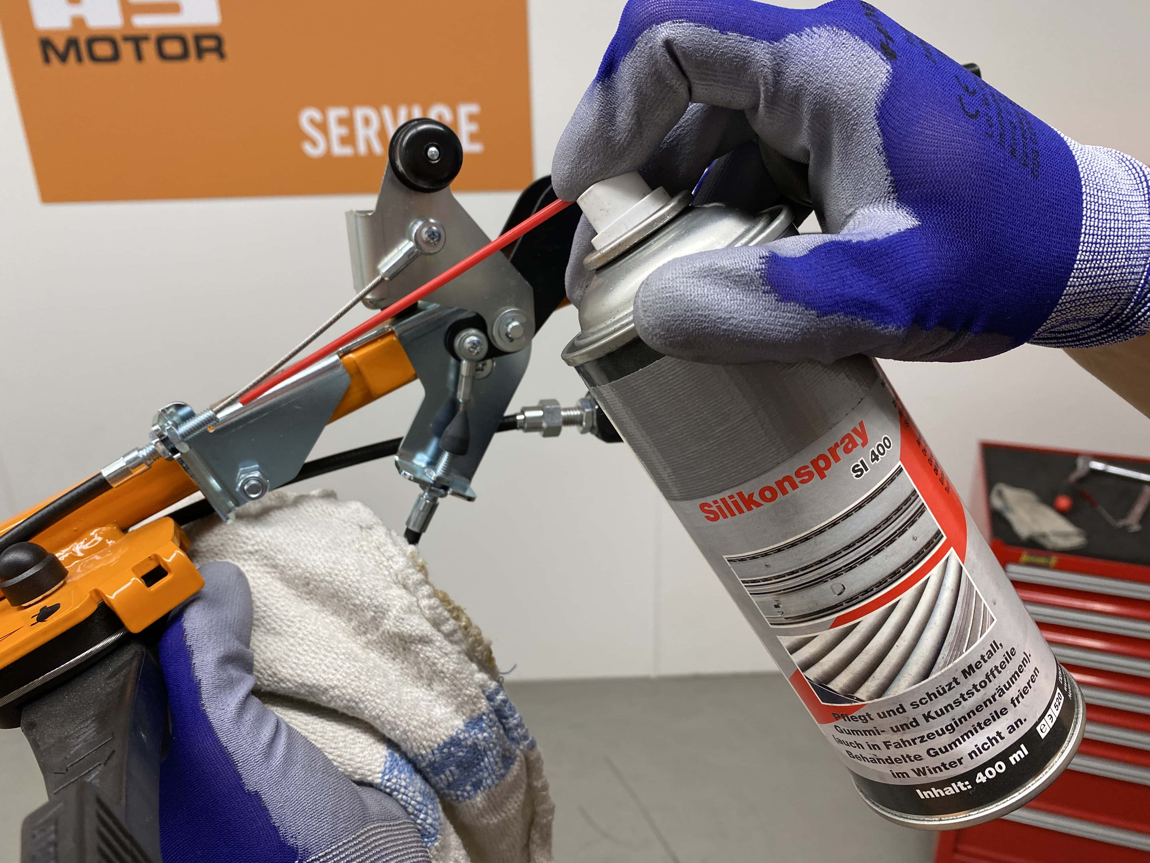 Bowden cables and their outer shells can be checked while cleaning the bodywork. Chafe marks, kinks, bruises and broken strands impede correct functioning. Further damage can also result if, for example, a clutch does not disengage the transmission properly. For this reason, test the movement of the cables and the end fastenings. It is best to use a silicone lubricant to lubricate the Bowden cables. In contrast to oils and greases, silicone does not resinify, and less dirt sticks to it.
