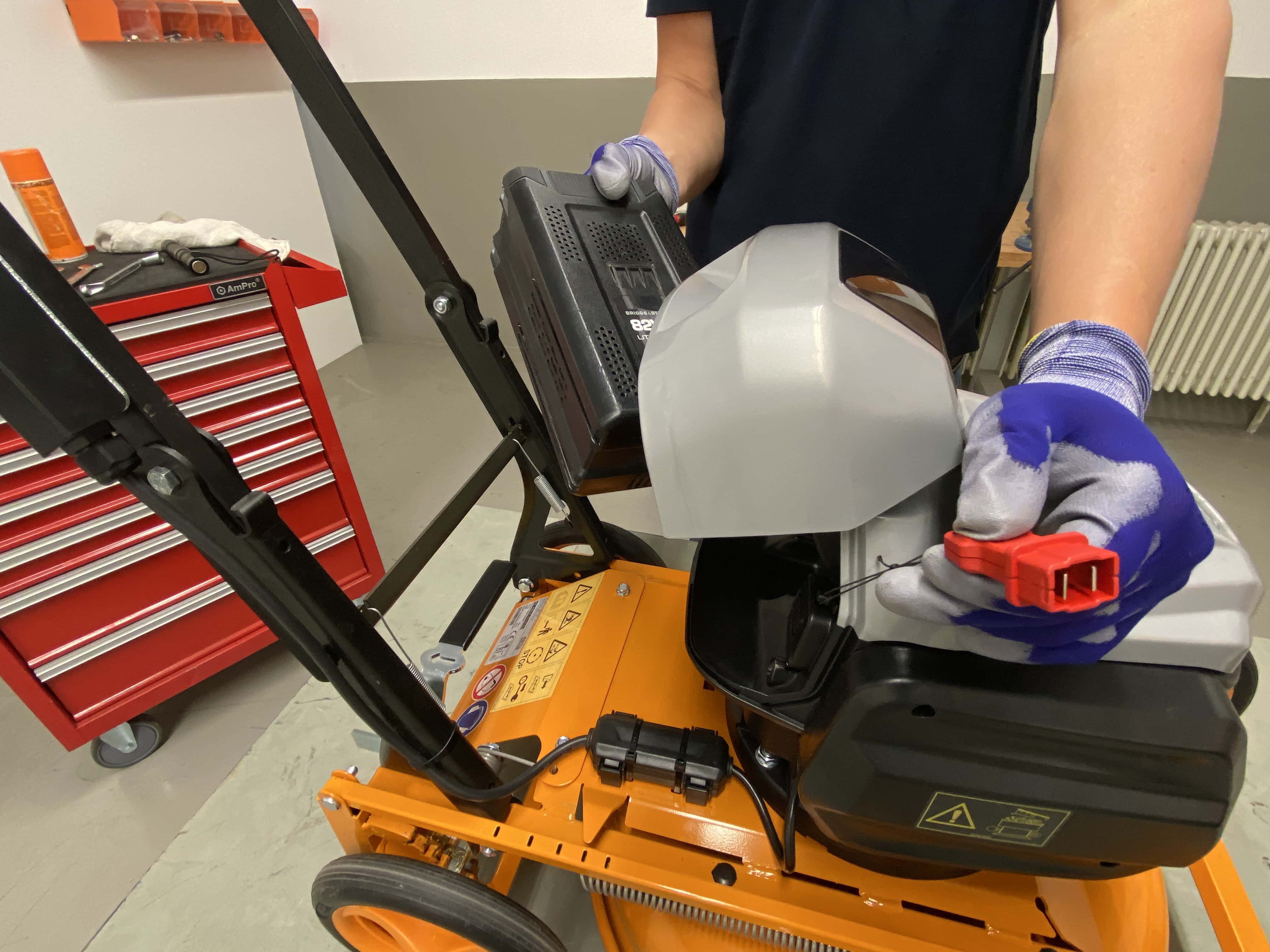 Every check-up begins with the necessary safety precautions. For example, the possibility of an accidental start of the machine must be eliminated before any action can be performed. For this reason, the main plugs must be disconnected on electric mowers. For battery-powered machines, remove the batteries and, if necessary, activate the off switch or remove the safety key. On motorized machines with a rope start, you must remove the spark plug connector. To be on the safe side with ride-on mowers, remove the ignition key and, if possible, disconnect the battery before starting work on the machine. Close fuel taps and tank ventilation. Basically, good ventilation must be ensured and the machine must be standing safely. Guarantee that no ignition sources are nearby and wear cut-resistant gloves.
