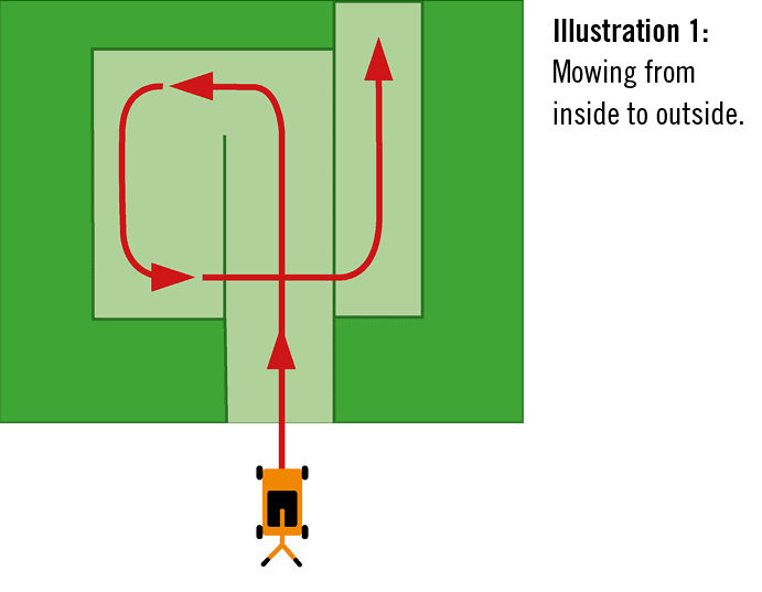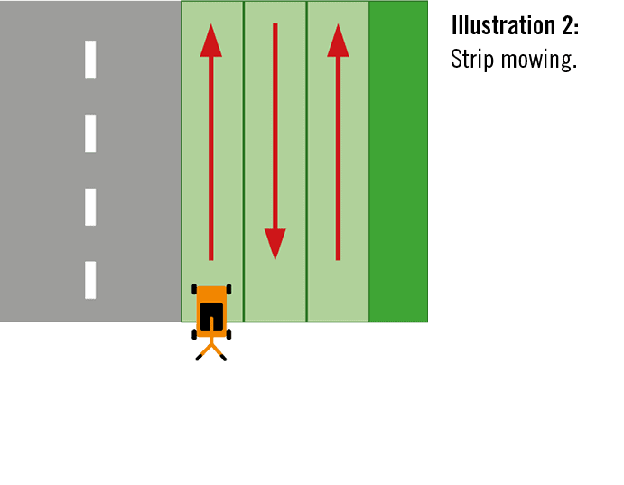 - Strip mowing (mosaic mowing) is useful if the entire area must be mowed in two weeks (see Illustration 4)